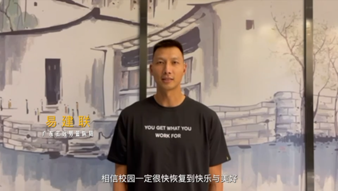 “亲爱的同学们,在大家共同的努力下,抗疫工作已经取得了成效,希望大家继续做好个人的防护,保持平和的心态,相信校园一定很快恢复到快乐与美好。新华学院的同学们,加油!”易建联在视频中说。
