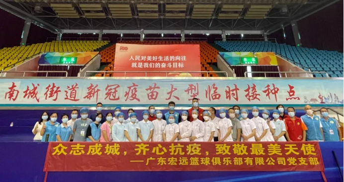 作为宏远男篮球员代表,党员曾繁日、入党积极分子赵睿为志愿者、医务人员送上简餐食品及消暑饮品,用实际行动为打赢疫情防控攻坚战、疫苗接种攻坚战贡献力量。