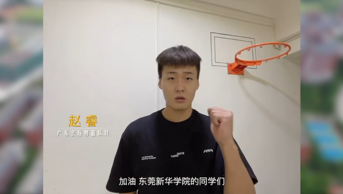 27日,广东宏远篮球俱乐部易建联、赵睿、曾繁日、苏伟、王薪凯等球员专门录制了视频,为受疫情影响的广州新华学院(东莞校区)学子们加油打气。
