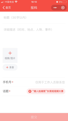 投稿界面如下图所示,标题需填写“作品名称+姓名”,详细描述部分可填写:发布平台+账号+链接。话题选择“‘潮人拍潮莞’东莞短视频大赛”。