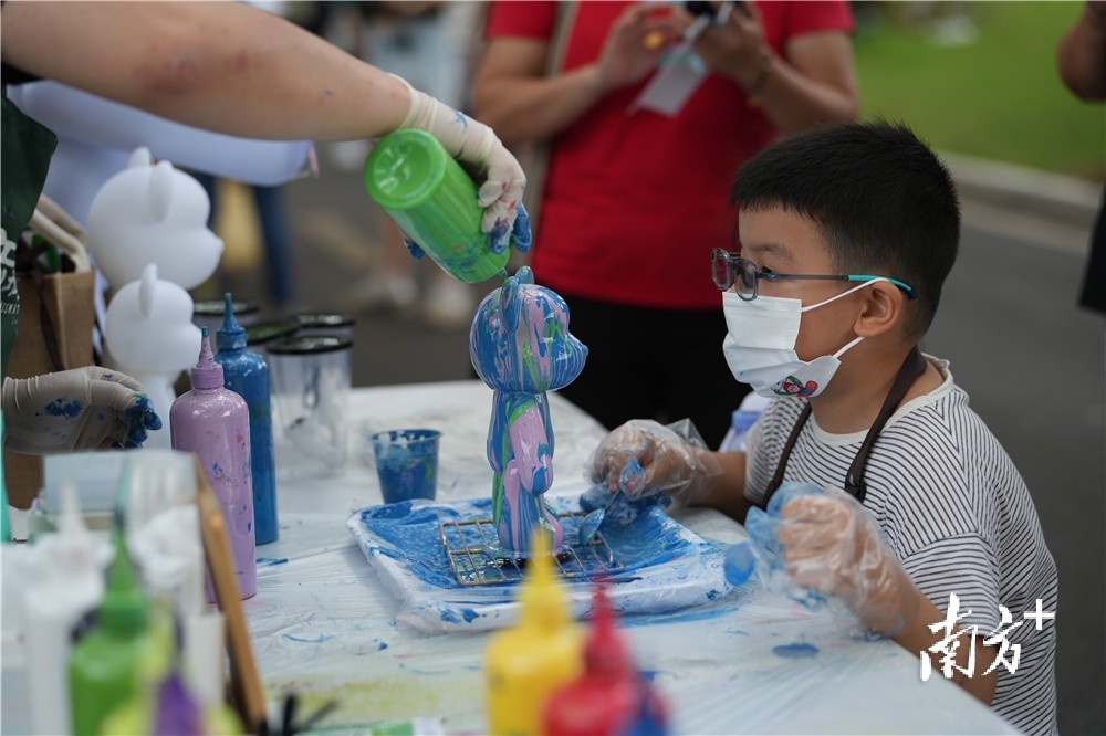 “听说这里有个很好玩的活动,特地过来玩。”专门从桥头赶过来打卡的石龙中学学生蒋易说到。在“玉兰音乐剧BOX”摊位前,蒋易还和妈妈玩起了“你划我猜”互动游戏。现场工作人员出提示词语,他来比划、妈妈猜。