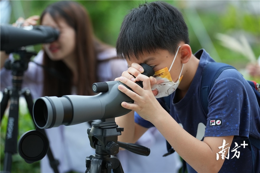 在“萌宠+科学实验集结营”,30多种小动物齐聚一堂。在工作人员的讲解引导下,小朋友们或凝神观察,或手持饲料,或大声提问,或轻声鼓励身边小伙伴接近小动物。同样和动物有关的,还有水岸边的追日逐月观鸟计划。一下午的时间里,池鹭、小白鹭从头顶飞过,借由观测设备,被小朋友的眼睛精细捕捉,“借科普体验打开孩子们的视野,触发对天文科学的兴趣,引发对生命的思考和对地球的关注。”严尉铭说。