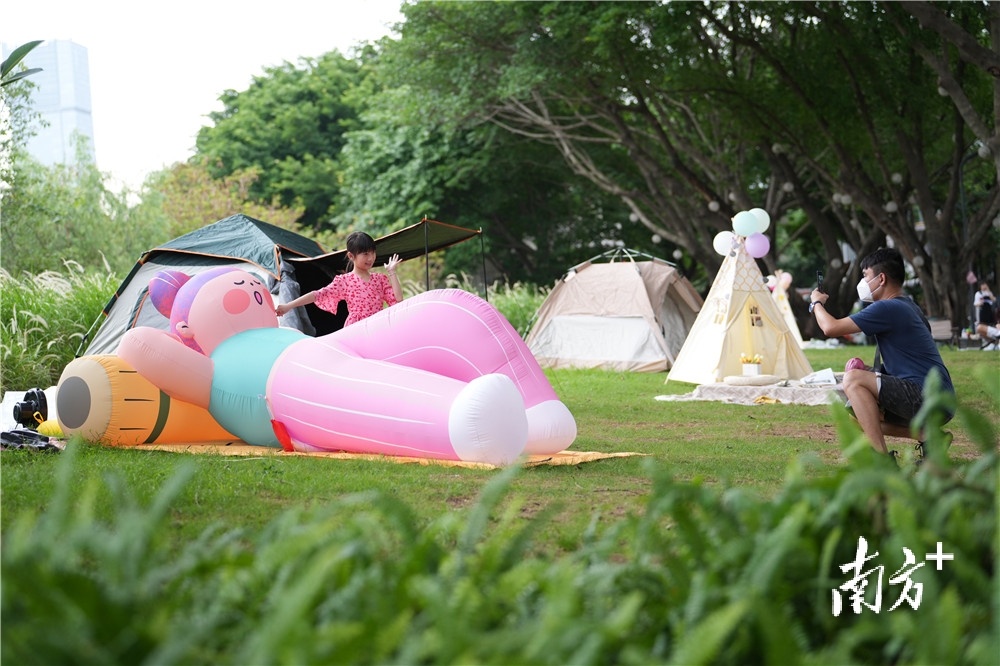 “人生‘营’家”等露营节IP“元气girl”的表情包近期也成为不少潮流人士的聊天标配。露营节活动现场,不少市民被“元气girl”可爱的表情和生动的肢体语言吸引,纷纷模仿其同款动作拍照合影。