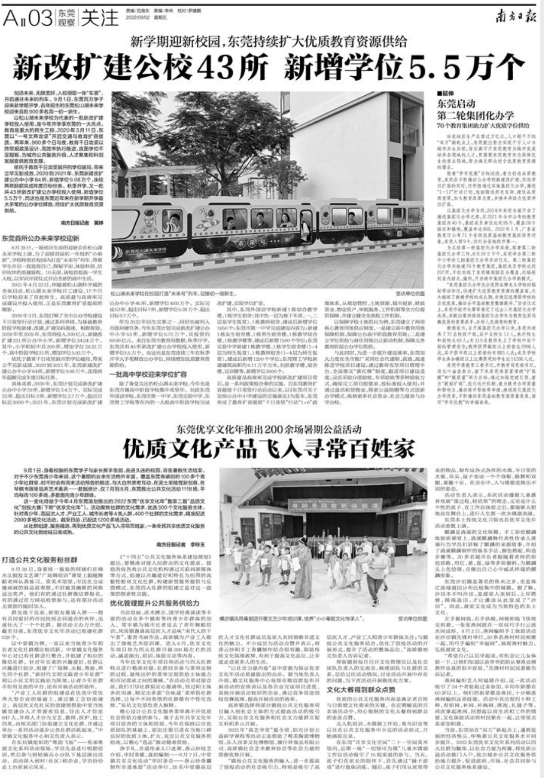 9月1日,身着校服的东莞学子与家长挥手告别,走进久违的校园,宣告暑假生活结束。对于不少东莞青少年来说,这个暑期的业余生活格外丰富。覆盖东莞各镇街的100多个青少年社群里,时不时会有周末活动预告的推送,与大自然亲密互动、在泥土里揉捏新创意,在琴棋书画里培养艺术素养……数据统计,仅7月到8月,东莞推出公共文化活动1118场,平均每周100多场,多数面向青少年群体。