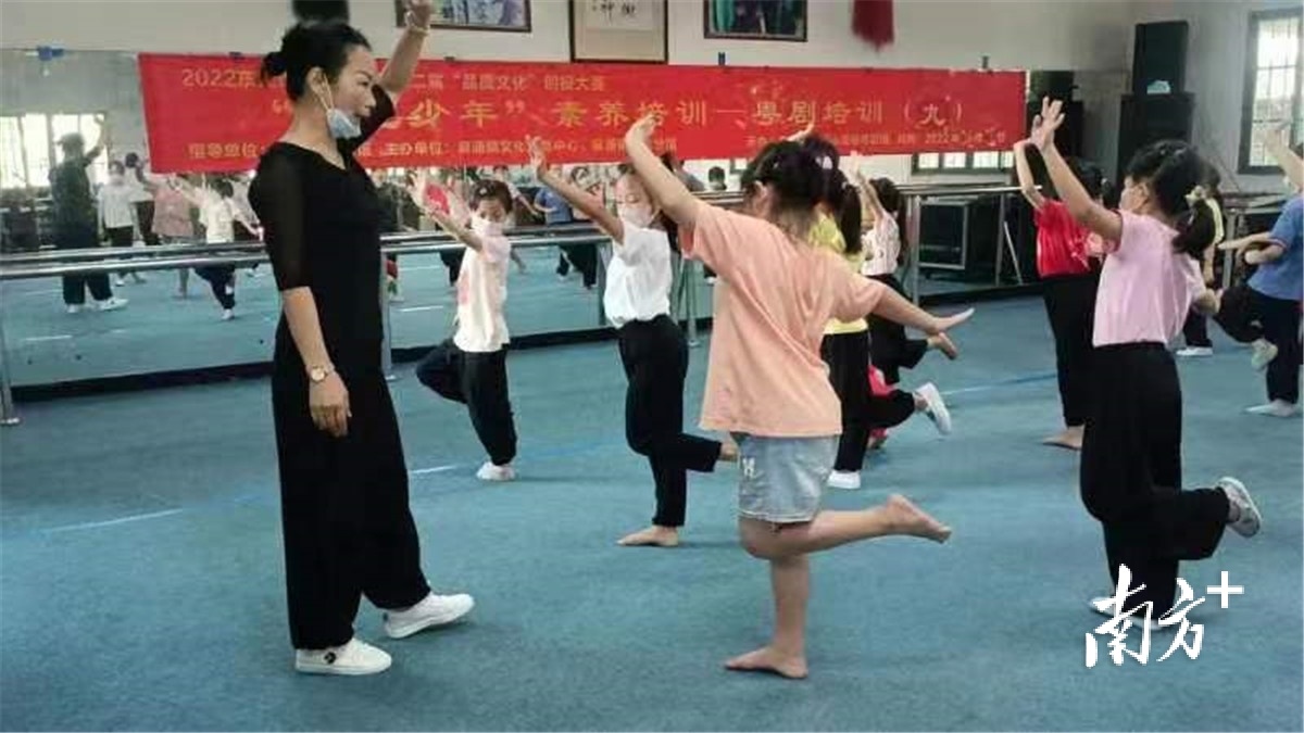 横沥镇凤凰粤剧团开展文艺少年培训课,培养“小小粤剧文化传承人”。受访单位供图