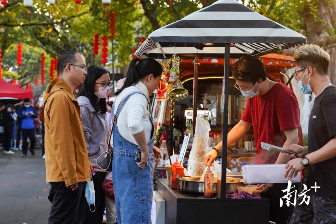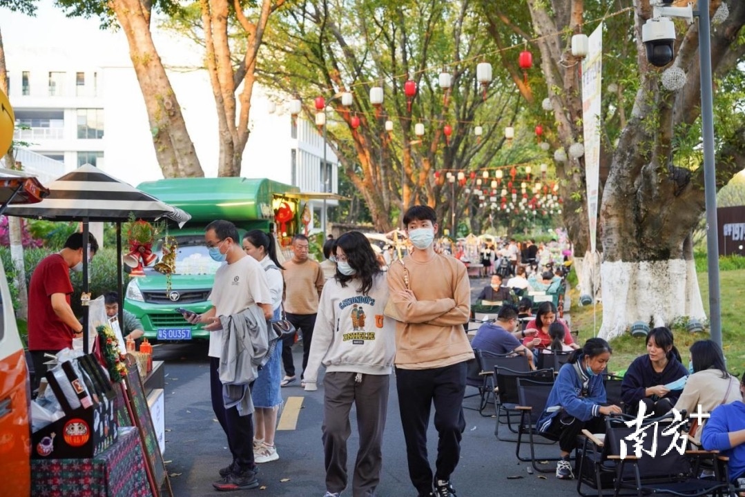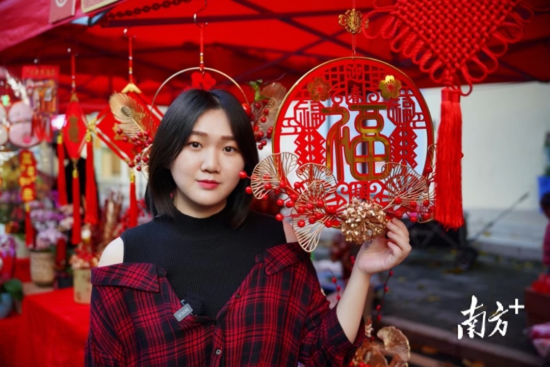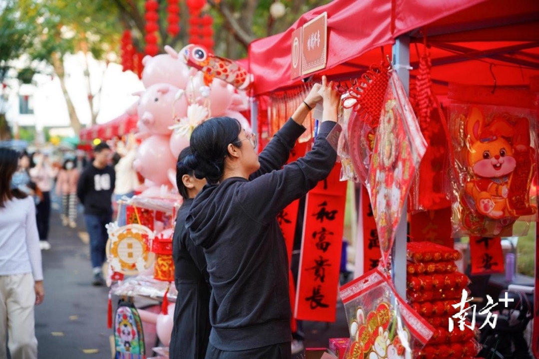 有年花年桔,有春联,还有手工艺品和美食摊位,作为位于东莞市区的大型花市,鳒鱼洲水岸花市吸引了大量年轻游客。