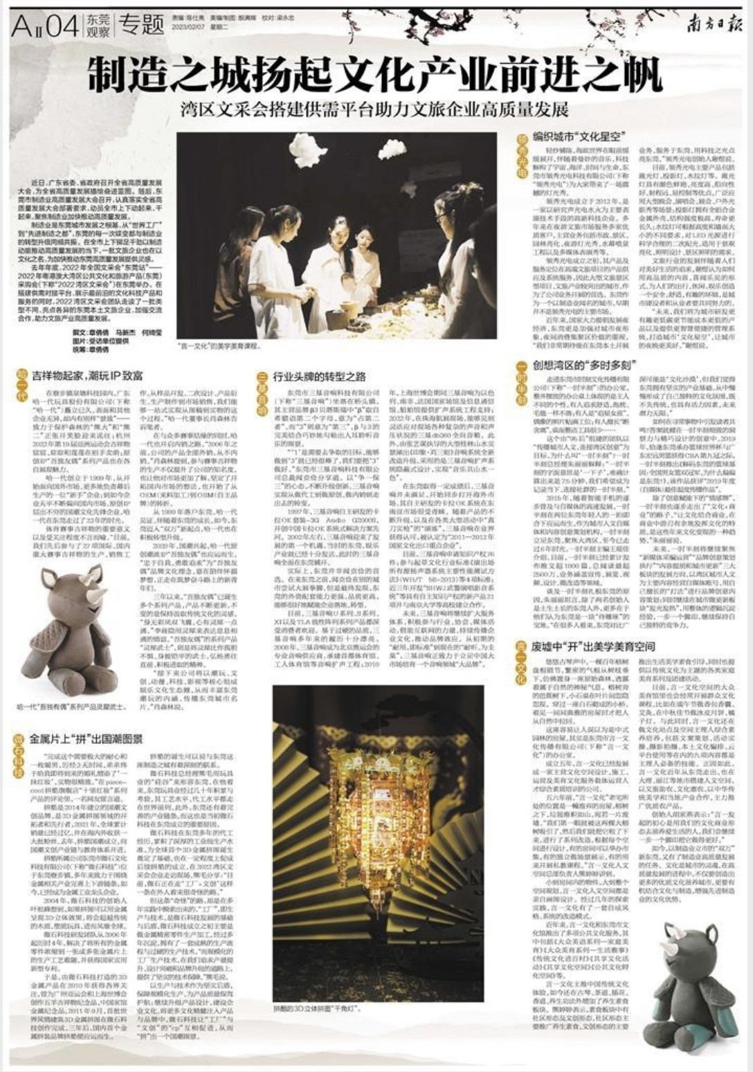 如今,以制造业立市的“双万”新东莞,又有了制造业高质量发展的任务。文化是城市的灵魂,在高质量发展的进程中,不仅要创造出更多的优质文化滋养城市,更要有机结合文化与制造,增强先进制造业的文化优势。