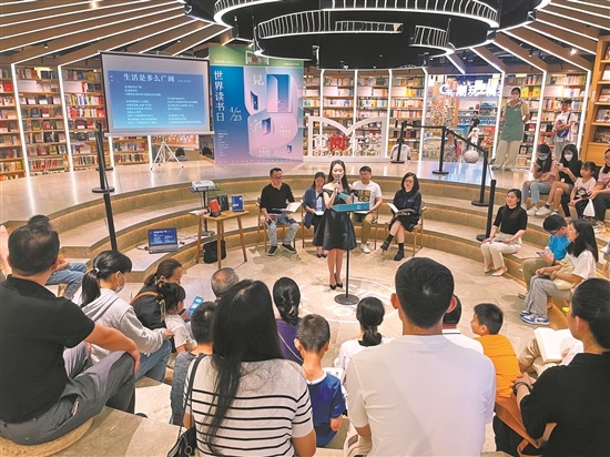 在繁华的东莞国贸商圈,不仅有琳琅满目的商品,也有内涵丰富的文化滋养。4月22日晚8点,第152场“覔读”朗诵会在覔书店(东莞国贸店)覔句场如期举办。作家钟宇、自由撰稿人李冬、“95后”《论语》全职传播人芮小乔、世界500强企业管理者郭玲芳等4名市民作为领读嘉宾,与东莞各行各业的诵读爱好者齐聚一堂,共同领会文字的魅力以及书本中所蕴含的生活哲理。