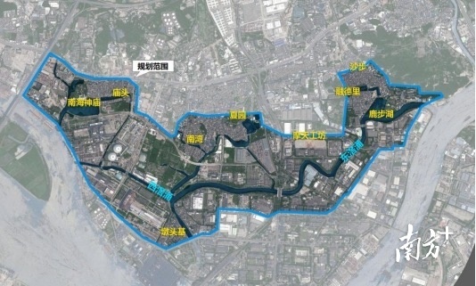 扶胥古运河西起南海神庙,东至龟山,岸线全长6.5公里,其中东段5.05公里,又名“东滘涌”;西段1.48公里,又名“西滘涌”,本次提升工作沿河划定约500米陆域纵深的研究范围,旨在推动运河沿线资源高效整合,实现岸线贯通与风貌提升,高质量推进地区的产城融合发展。
