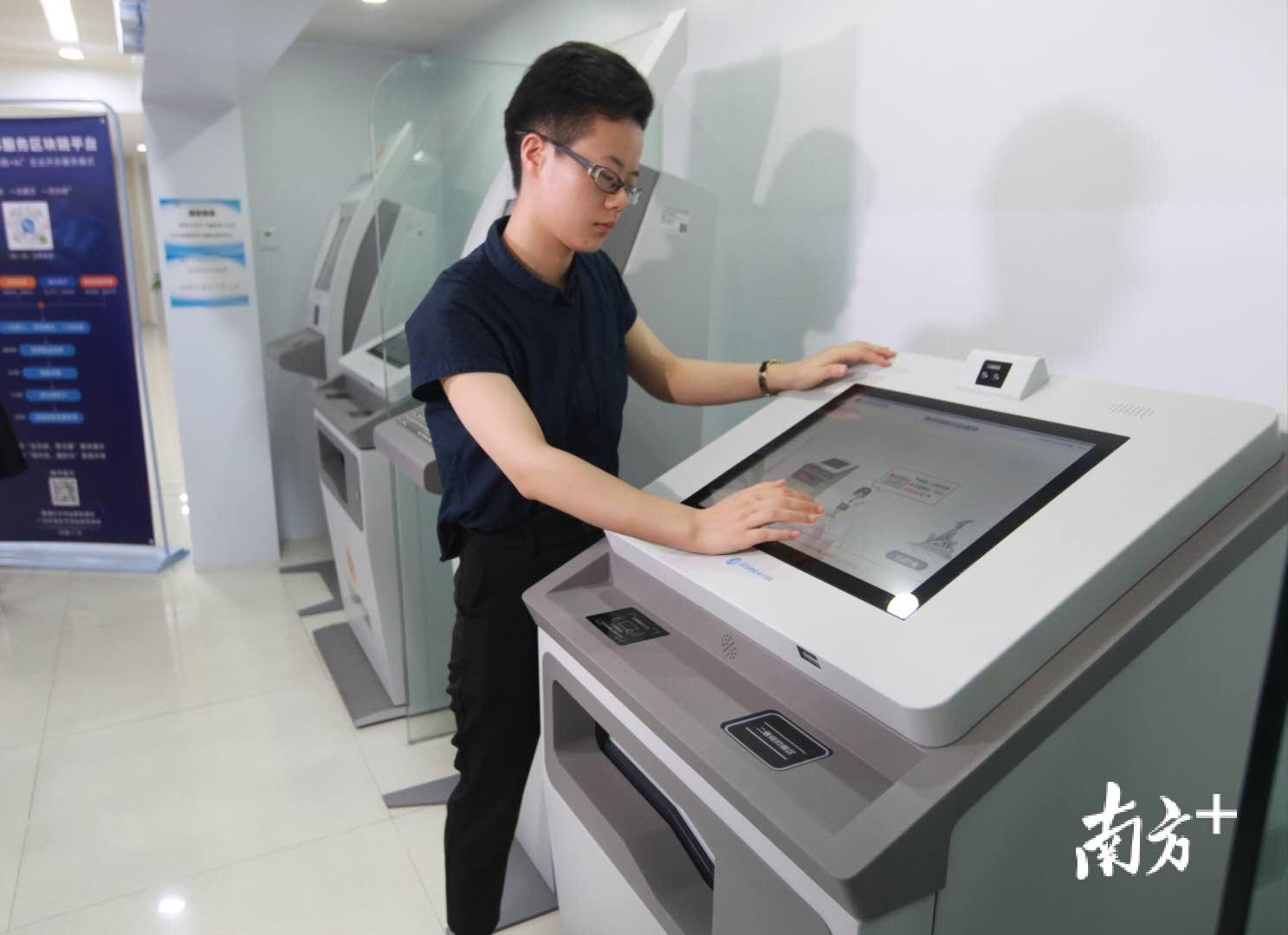 4月22日上午,办理开办企业业务的刘小姐来到黄埔区政务服务大厅,扫描了“区块链+AI”企业开办服务二维码并录入信息。