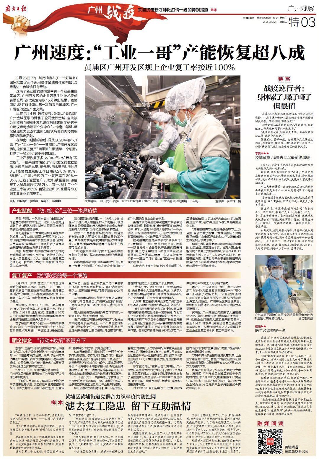 从抗病毒口服液、检测试剂盒到口罩的“心脏”,来自黄埔区、广州开发区的“制造”正为战斗在疫情一线的“白衣天使”们送去“弹药”。