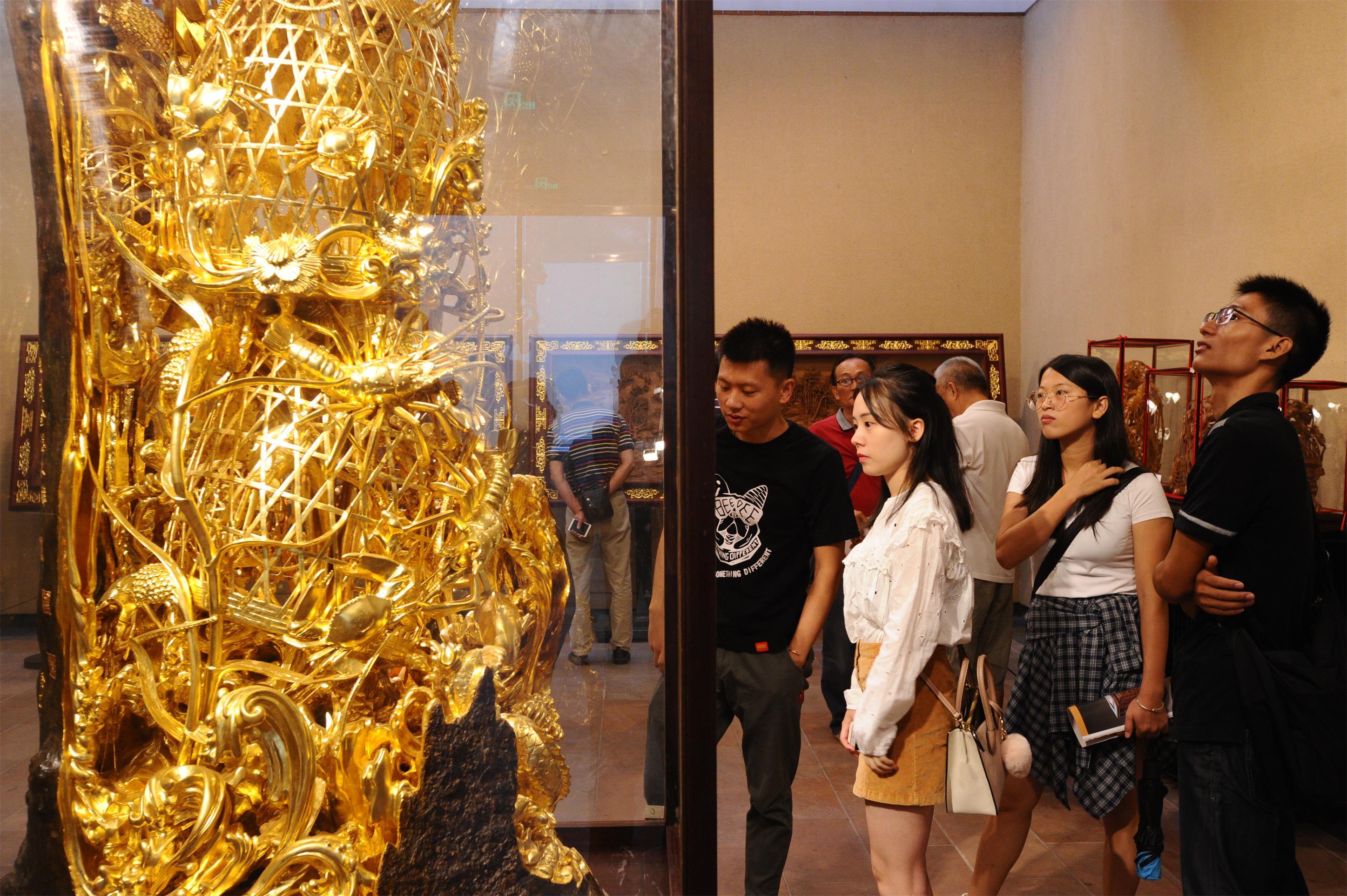 本次展览共展出辜柳希历年创作的木雕作品,以及他和相关机构合作、指导完成的木雕作品100多件,既有体量庞大的恢宏巨制,又有精致小巧的桌面摆件。樟木通雕《清明上河图》、樟木大型贴金《步步高龙虾蟹篓》、沉香木精雕《乡情·松鹤延年》等,既彰显了辜柳希大师的精湛工艺,也体现了当代潮州木雕的整体风貌。展览为期6天。