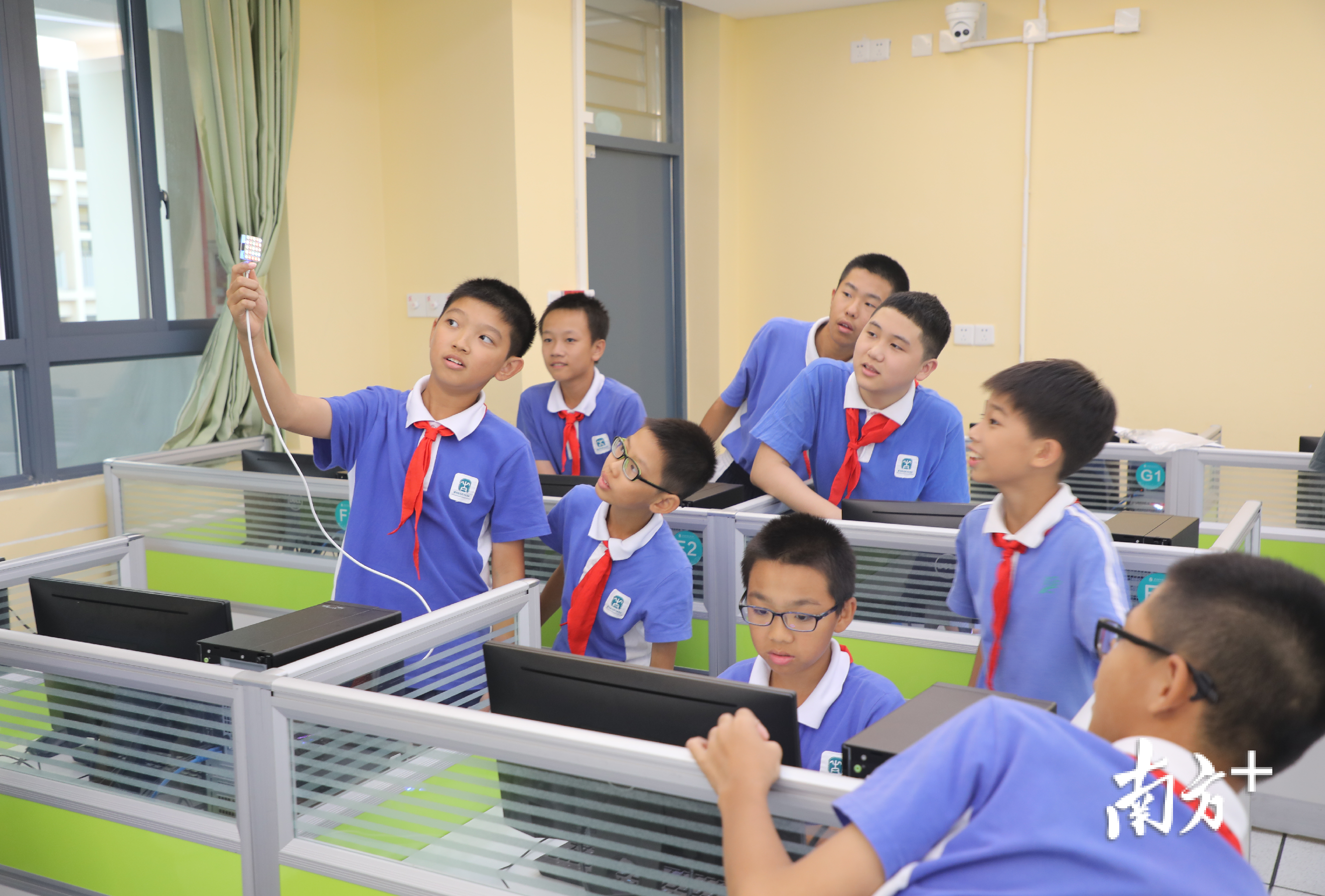 “虽然衣服都汗湿了,但我们很开心!”一位刚从足球场跑回教室的男生说。据了解,为了保证教学质量,该校很多社团课采取小班额教学制,由学生自愿报名,家长网上“抢课”。“科创、足球、篮球等社团课非常抢手,基本上都是被家长‘秒抢’。”学校教师表示。