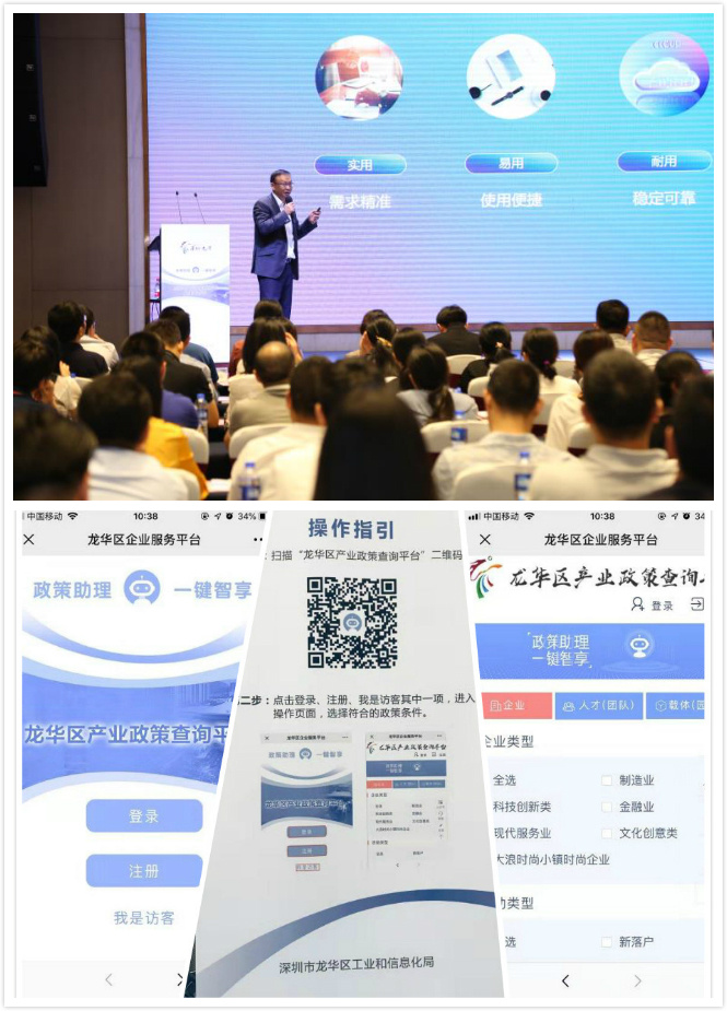 同时,与"1+N" 产业政策体系相匹配,龙华区推出了智能化产业政策查询平台,复合海量数据、精准计算与匹配、智能推送于一体。