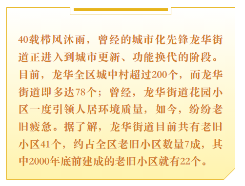 无疑,如何快速实现老城换新颜,以更完善的城市功能、更优更美的人居环境,保障辖区更高颜值、居民生活更高品质,是龙华街道高质量发展的又一道必答题。