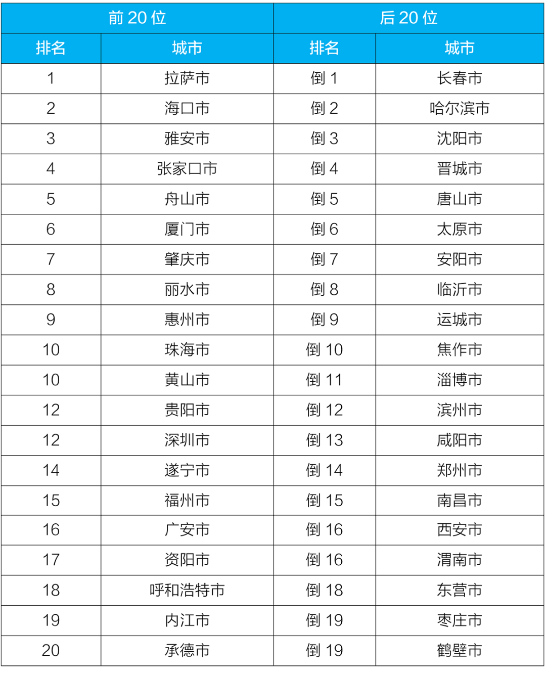 2020年4月168个重点城市环境空气排名前20位和后20位城市名单