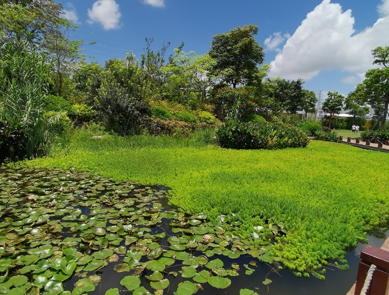 燕罗湿地位于松岗水质净化厂北侧,洋涌桥大闸上游的茅洲河河滩上,形状呈“弯月形”,占地面积6.50公顷。湿地通过自然积存、自然渗透、水质净化等措施,使得污水、雨水经处理达标后就近回补河道,营造动植物栖息地,构建人水和谐共生的生态环境。