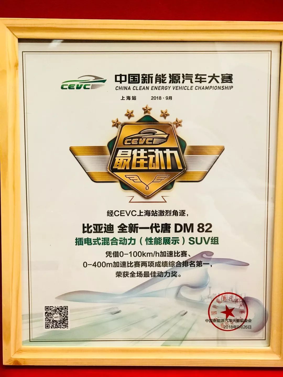 9月26日,2018中国新能源汽车大赛上海站经过两天的激烈争夺正式落下帷幕。来自13家国内顶尖车企的19个新能源车型精彩亮相,通过7个项目的比拼争夺8个组别冠军及5个全场大奖。比亚迪全新一代唐DM凭借出色的动力表现勇夺全场最佳动力性能大奖,实力远超一众合资、国产品牌。