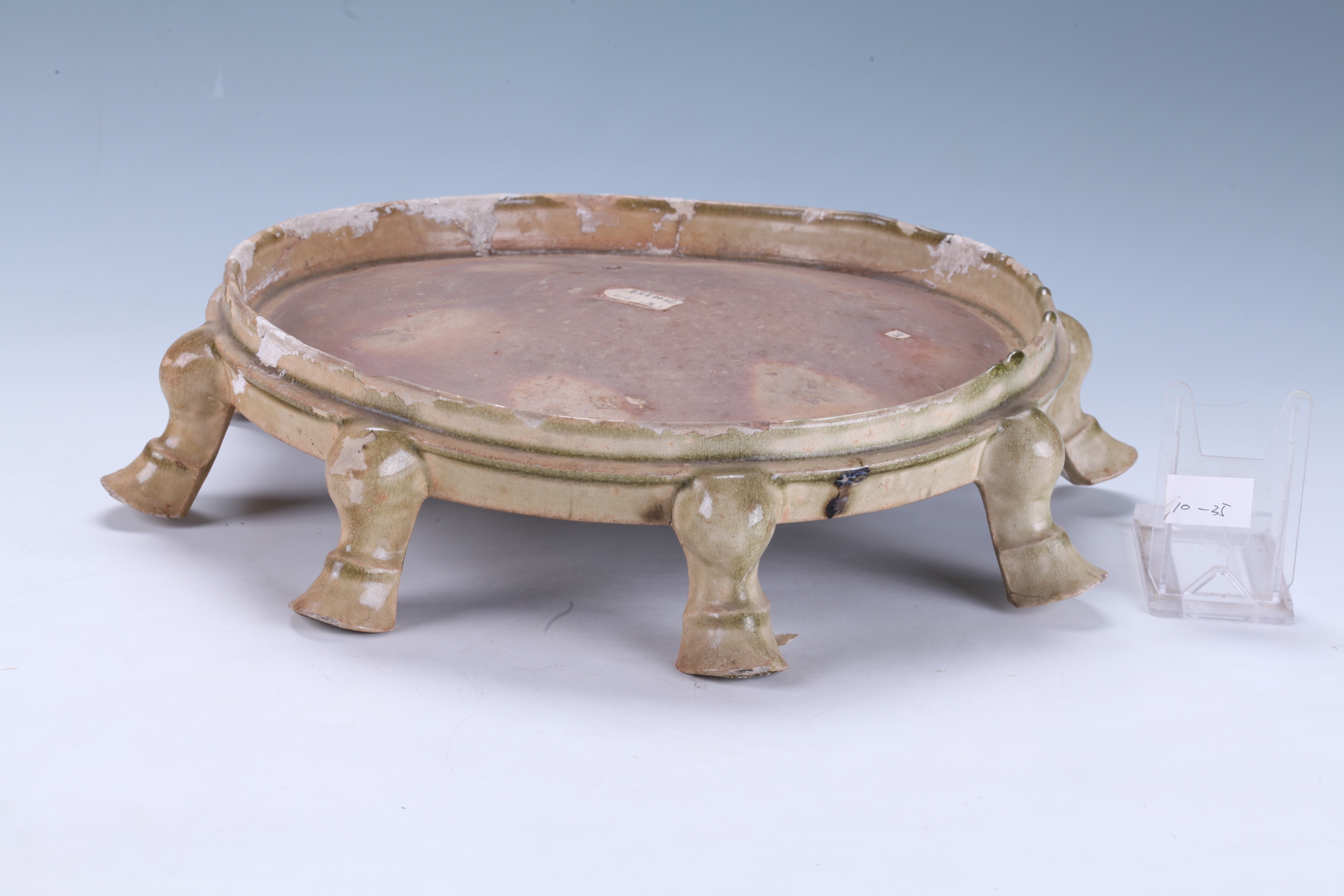 比如这个体积硕大、造型奇特的唐代八兽足青釉砚,八只粗壮的兽腿承托起一个直径达35.5厘米的圆形砚盘,气势恢弘。砚身的开片青绿釉则绽放出莹润的光泽,方便书画家润笔蘸墨,既实用又别致。