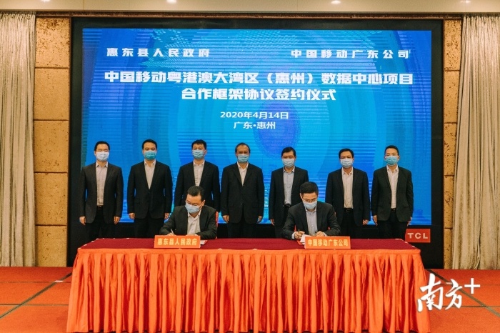 4月14日上午,中国移动粤港澳大湾区(惠州)数据中心项目合作框架协议签约仪式举行。惠州市委书记、市人大常委会主任李贻伟,市委副书记、市长刘吉,中国移动广东公司总经理魏明、副总经理蔡伟文等见证签约。副市长余金富主持签约仪式。惠东县政府负责人、中国移动惠州分公司总经理周忠坤代表双方签约。