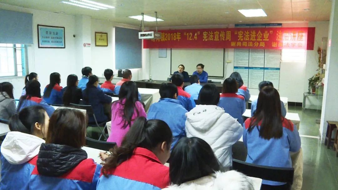 近日,谢岗镇举行省“法治文化建设示范企业”揭牌仪式,并开展“送宪法进企业”法治宣传讲座。