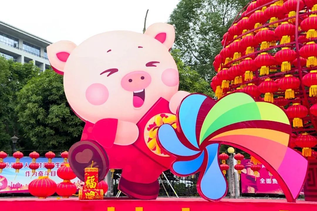 以“猪”为主题的各种装饰为农历猪年的到来增添一份亮丽的色彩。