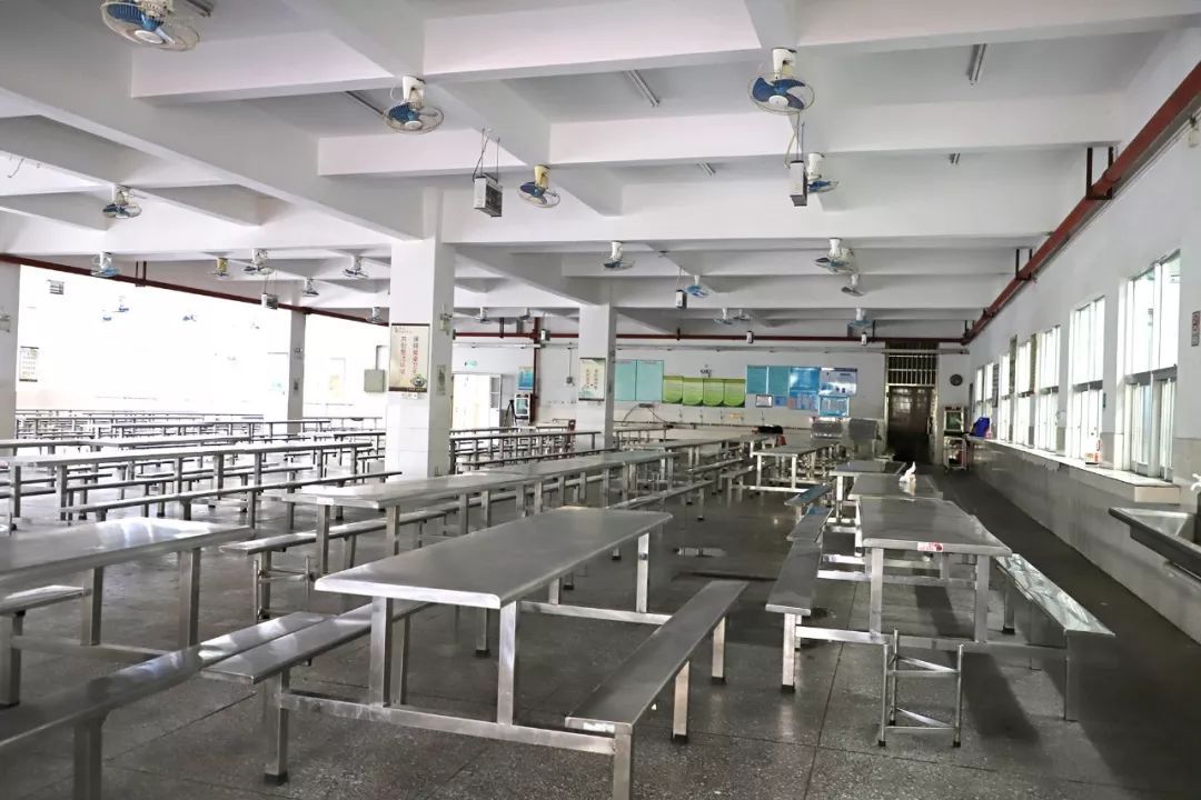 为更好地迎接学校师生就餐和保证食堂卫生,学校对食堂进行全面且细致的清洁和消毒。