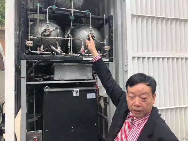 “上面的料自动到反应缸,跟喷油一样。到缸里面,反应以后出来,送到氢缸,然后到氢堆,出来就是电,后面就是一样了。氢堆,到电极驱动,车子行驶。”庞青年向现场记者解释。