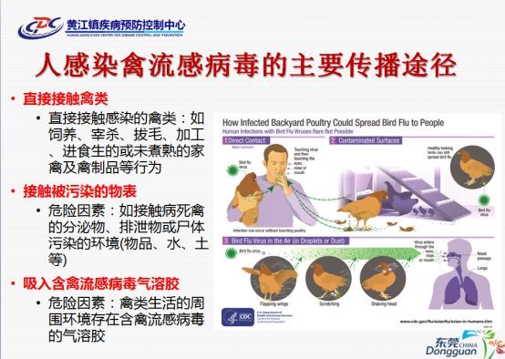 上图第一第二点很好理解,那第三点什么意思呢?就是说如果一个人运气不好,经过禽类生活的地方有可能吸入含有禽流感病毒灰尘、气体等等也有可能得禽流感哦!