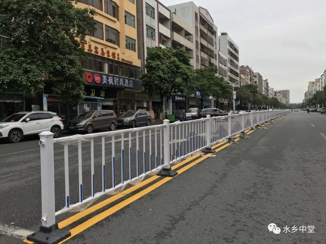 中兴路 也是我镇中心区的主干道,是新兴路和振兴路的交通连接枢纽,每天早/中/晚高峰时段,车流量、人流量很大。为了确保中兴路107国道路口至万和路口路段的通行安全,镇委、镇政府近日也对该路段安装了交通护栏。