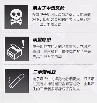 害巨大,可造成男性不育、致癌。为保障特别是儿童及青少年的健康,应全面禁止电子烟。