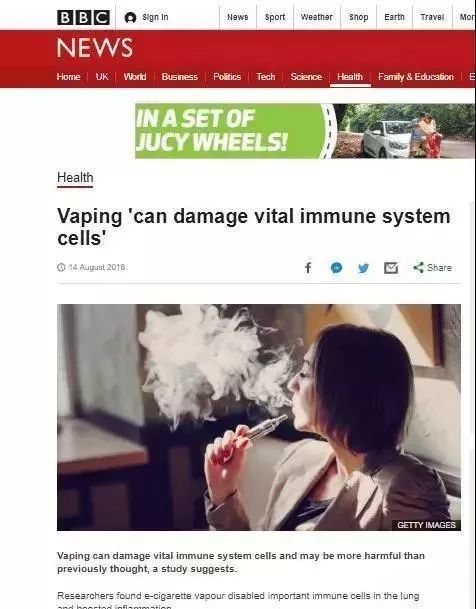 传统香烟吸烟者和非吸烟者鼻子里的免疫细胞,发现吸电子烟会使人鼻子中358个免疫基因受到抑制,而普通烟民有