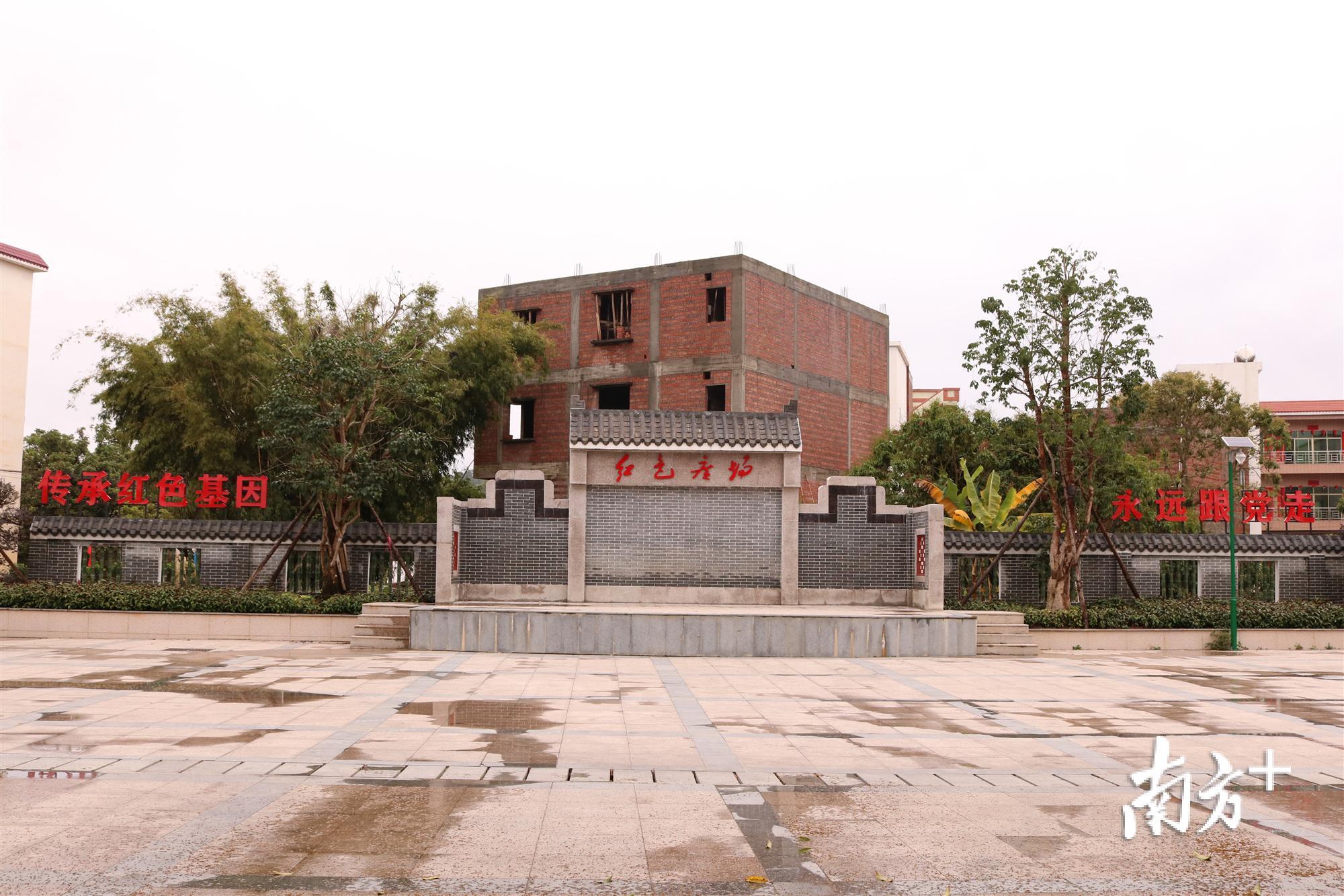 村民自愿无偿出让土地支持“红色村”建设。图为由村民无偿出让的荒废鱼塘改建成的河口寨村红色广场。