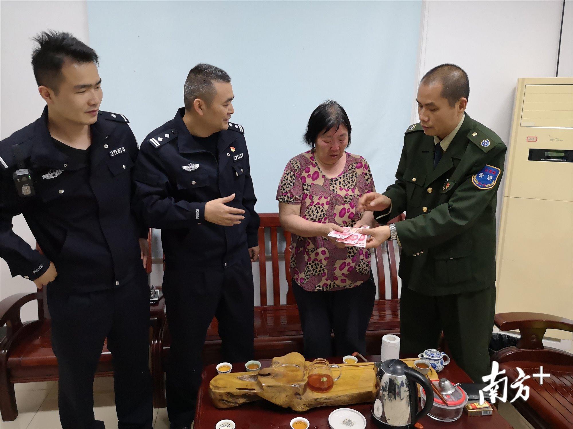区教导员和一名民警也自发为老人筹集路费。见此情景,老人激动地说:“你们真的太好人!刚刚送饭给我现在又给路费,还帮助我解决住宿的问题,真的太麻烦你们了,你们真的是活雷锋。”