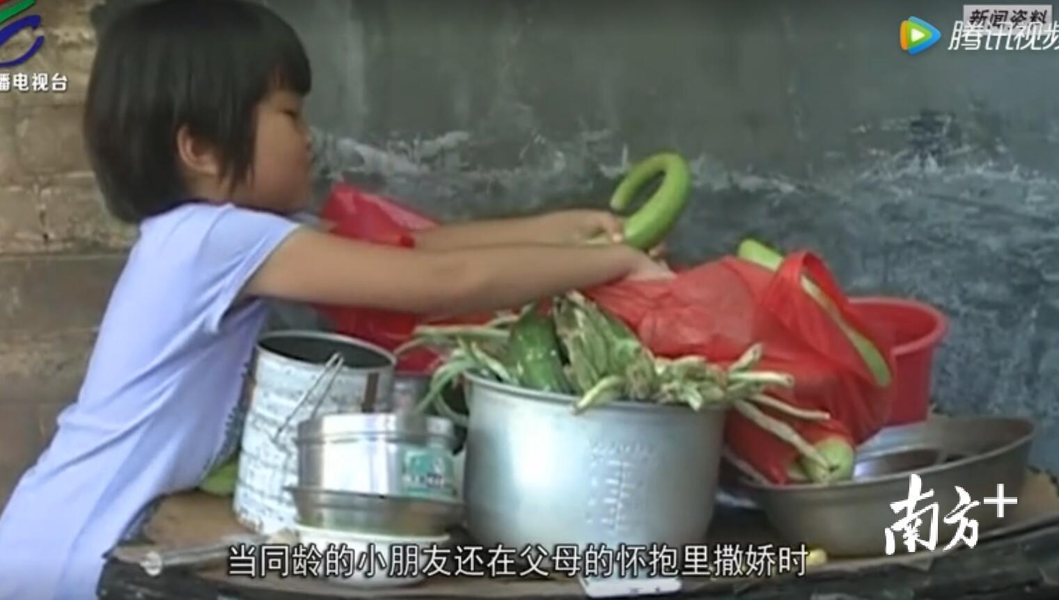 ▲7岁的叶洁玲每天给养父做饭喂饭。(图片来源于网络)