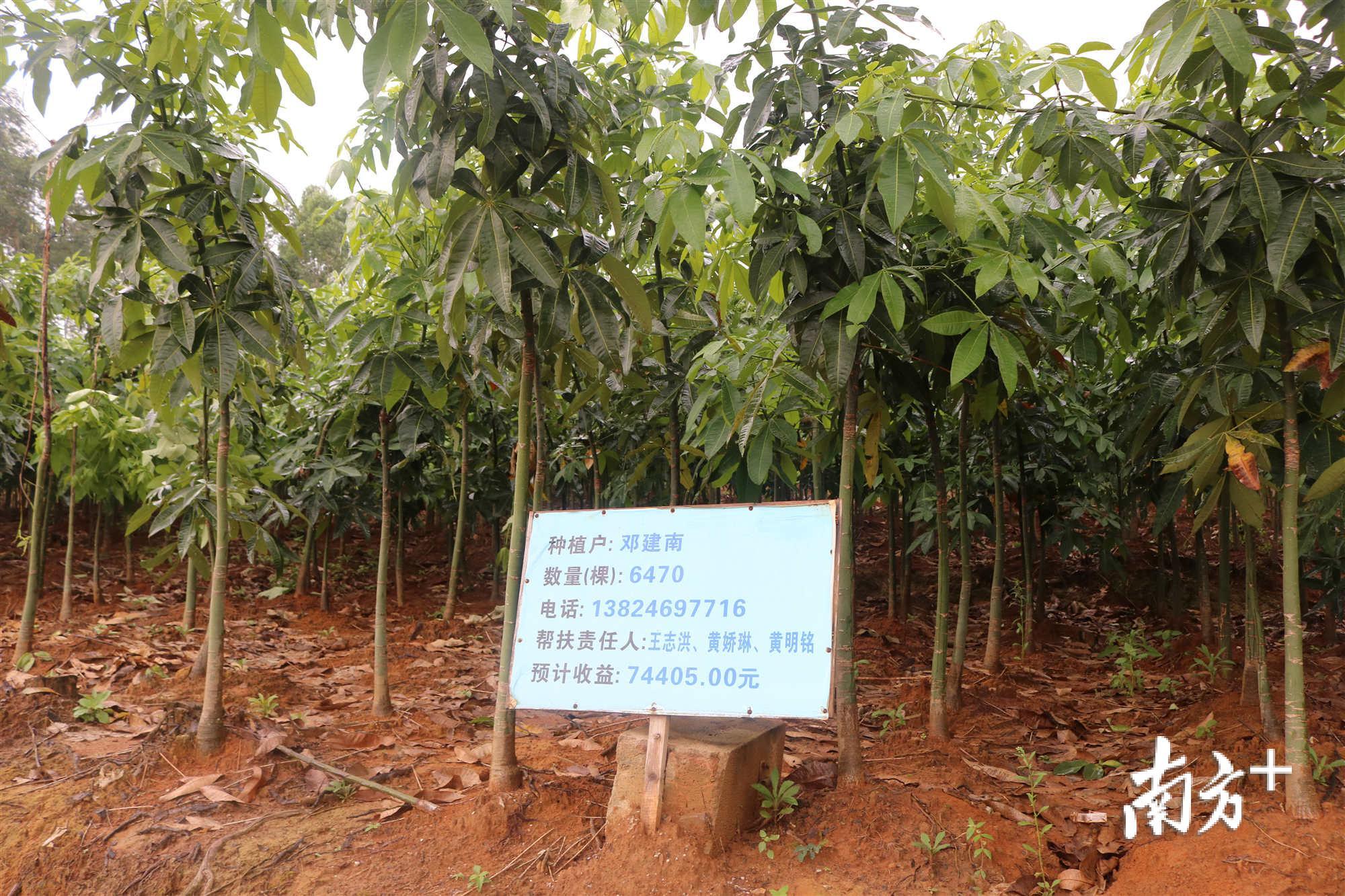 稳定脱贫关键在于产业脱贫,结合当地低山丘陵、黄泥地肥沃的特点,石底村扶贫工作队引进农业企业,采取订单合作方式投入180万建设了309亩发财树基地,把有劳动能力的45户贫户纳入其中,将发财树苗平均分给贫困户打理,让贫困户来当“管理者”。由公司提供种植技术指导和回收,树干一米以上胸径达到4至6公分,每株收购价为11.5元,胸径越长收购价越高,胸径达到10公分以上每株可卖上20多元,最大限度激发起农户的能动性。