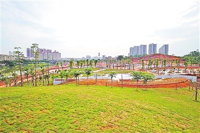 走进罗定江滨公园建设现场,首先映入眼帘的是一块刻着“罗定江滨公园”红色大字的石头,中轴广场平台和大部分道路已完成硬底化,乔木种植和灌木、植被绿化基本完成,现正进行大理石铺装,凉亭、公厕等配套设施已建成。据介绍,罗定江滨公园以沿江景观设计为重点,在建设过程中注重保护与展示罗定江沿岸自然景观与罗定历史文化特色,以打造兼具生态、景观、娱乐、文化、艺术、休闲、教育功能的新城江滨公园为目标。目前,公园已初具规模,有望于今年10月开园。