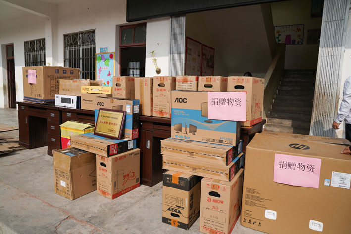 12月25日,A3打印机、音响、9套电脑、9张办公台、沙发等社会捐赠的教学办公设备被送到罗平镇围头小学,令这所位于省定贫困村的农村小学的教学办公条件得到了较大的改善,将有效提升该校的教育教学效率和质量。