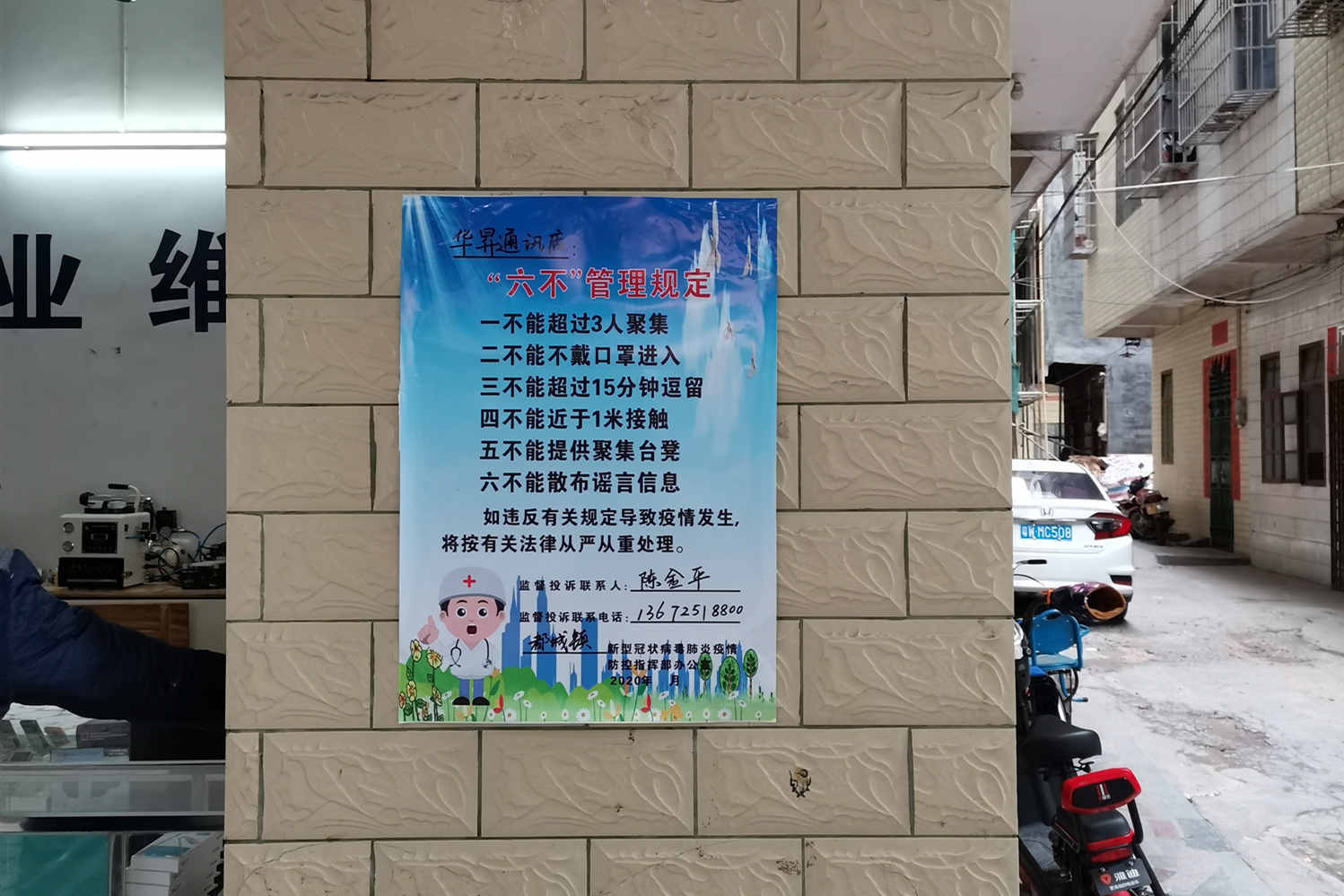 “一不能超过3人聚集;二不能不戴口罩进入;三不能超过15分钟逗留;四不能近于1米接触;五不能提供聚集台凳;六不能散布谣言信息。”走进云浮市郁南县乡村,响彻村头巷尾、田间地里的大喇叭声音便“飘”进耳朵,让乡村显得静而不寂。与往日不同的是,这几天的播放内容又多了一个《“六不”管理规定》。