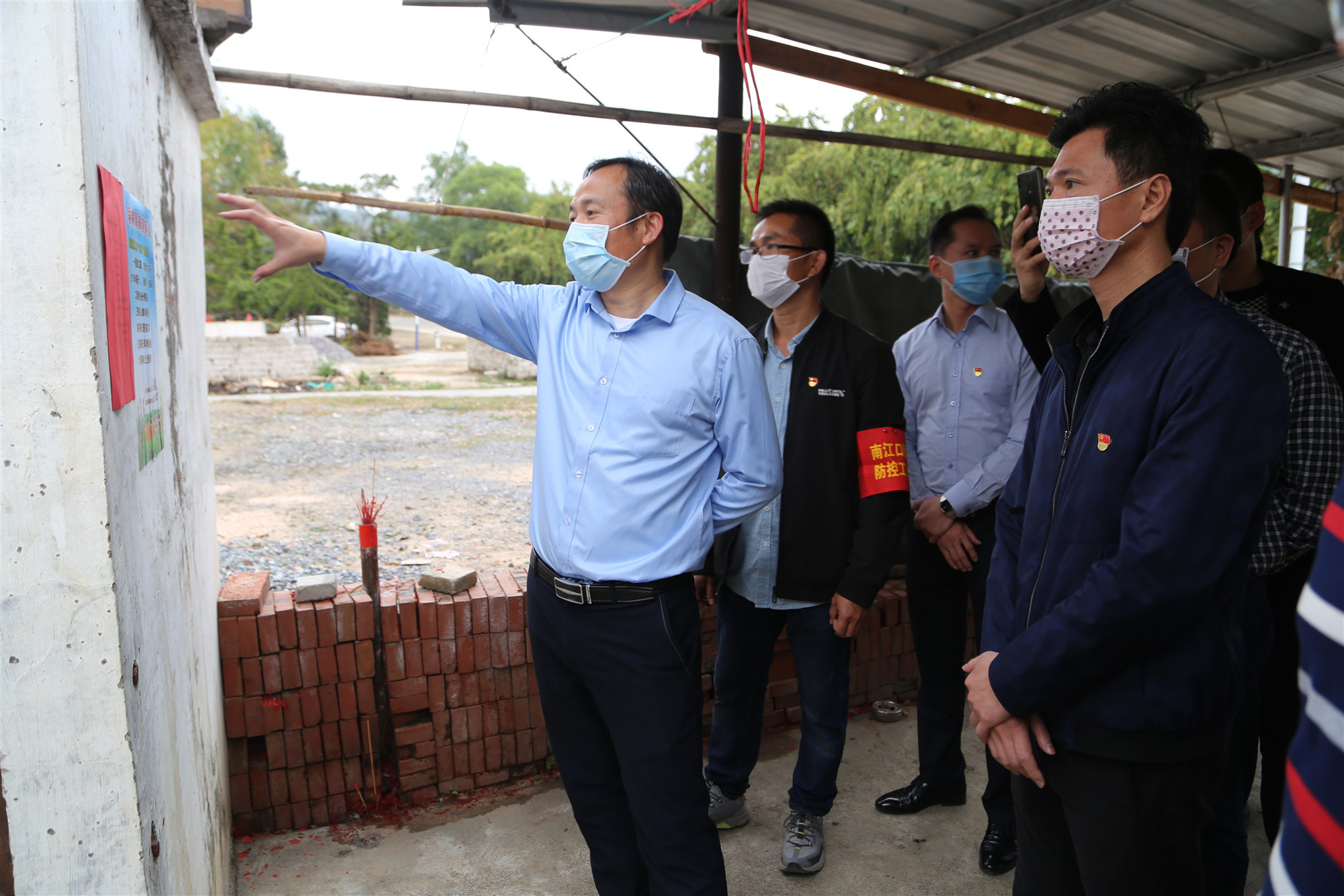 郁南县委书记梁子财到乡村督查防疫工作。