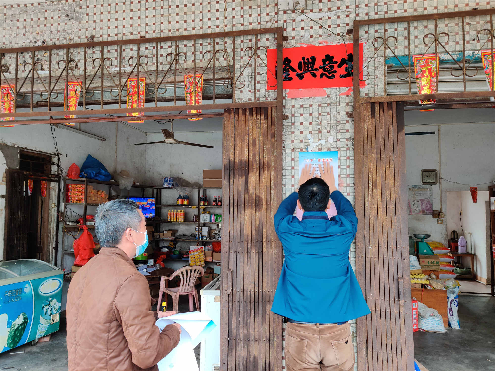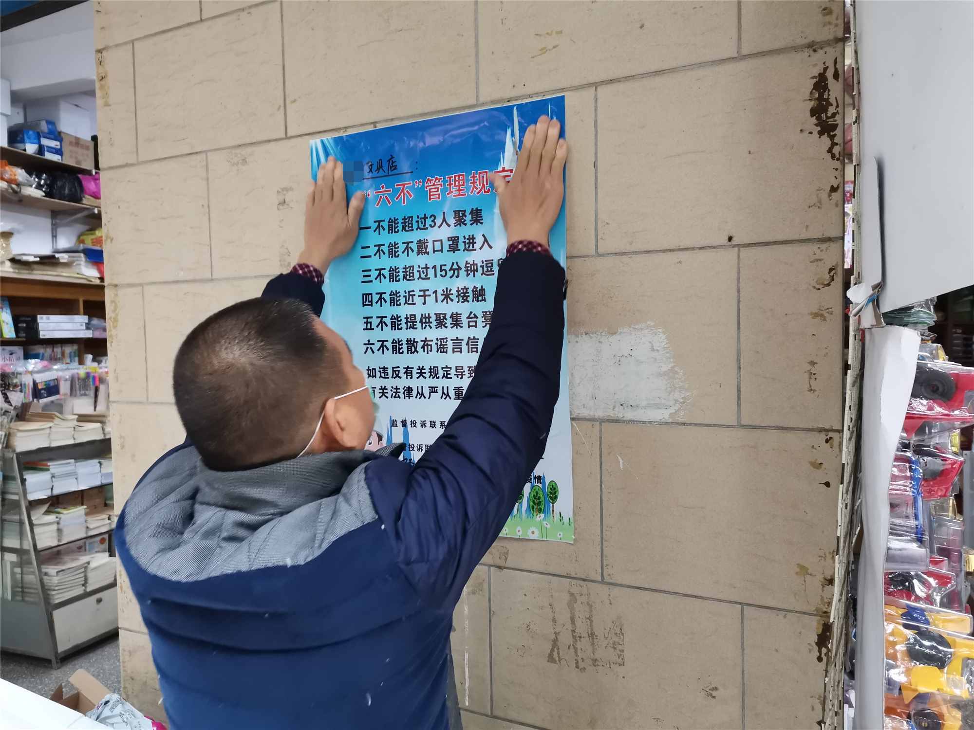 近日,在郁南各村居大街小巷,一个个身着红马褂的网格员走进小卖部、广场、候车亭等公共场所,把《“六不”管理规定》的海报张贴于显眼的地方,耐心向村民群众进行解读宣讲,并与小卖部经营者签订《承诺书》。