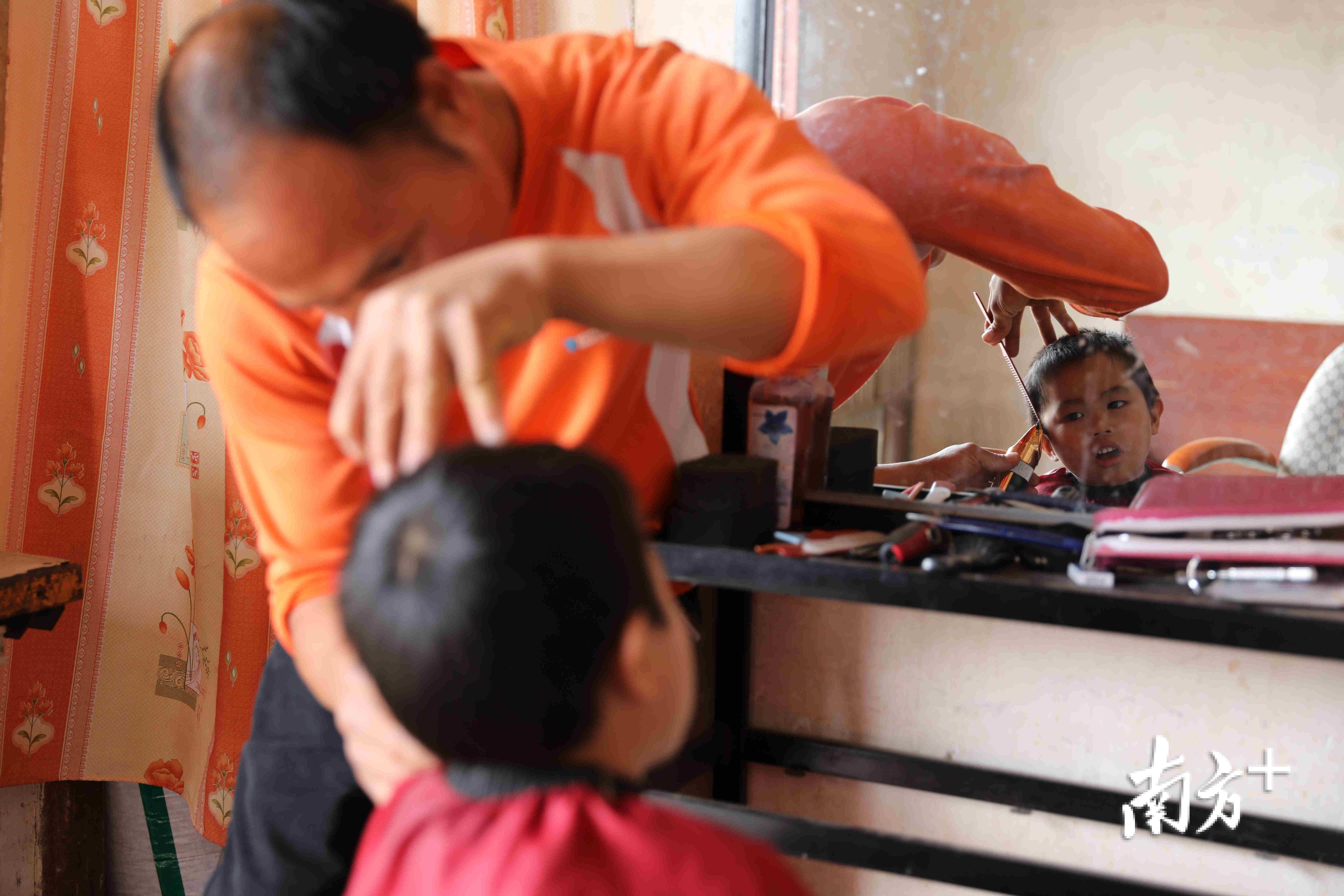 没过多久,帮扶工作队请来罗定市美容美发行业商会会长胡文新给黎光明一对一授课。2018年12月“光明为民理发店”正式开业,原本内向话少的黎光明也渐渐成了村里的“熟面孔”。村里的老人小孩都喜欢光顾他的理发生意,“方便又实惠,平时只需5元剪一次发,绝对是惠民价。”正在理发的村民黎桂森说。