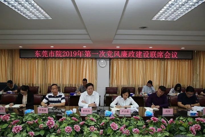 4月18日,东莞市院召开2019年第一次党风廉政建设联席会议,学习贯彻中央纪委三次全会、全国检察机关党风廉政建设和反腐败工作会议及市纪委四次全会精神,传达省院文件,通报相关情况和案例,研究部署2019年党风廉政建设任务。会议由党组成员、驻院纪检监察组组长许茂同志主持。