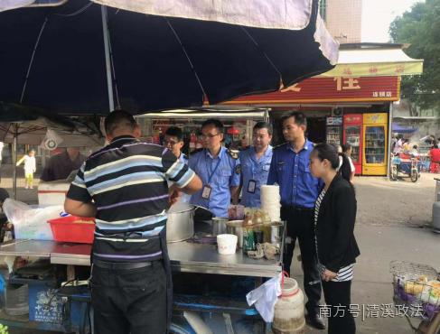 为彻底排查和整治清溪镇食品小摊贩存在的食品安全隐患,城管分局与食药监分局联合开展食品流动摊贩集中整治行动,重点加强对流动饮食摊点(包括早餐、快餐、夜市排档等)的食品安全监管,排查食品来源,严厉打击占道经营的食品摊贩及沿街店家倚门出摊等各类违章行为及无证照经营食品行为。