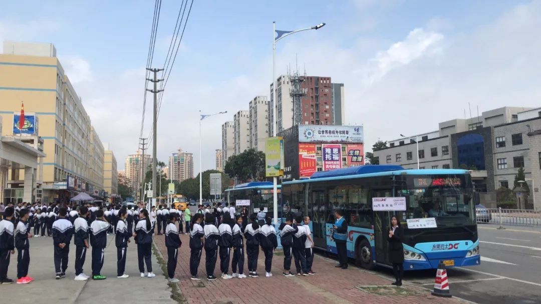 乘坐公交专线的学生将由老师带到后车区域,并由老师组织学生有序上车入座。