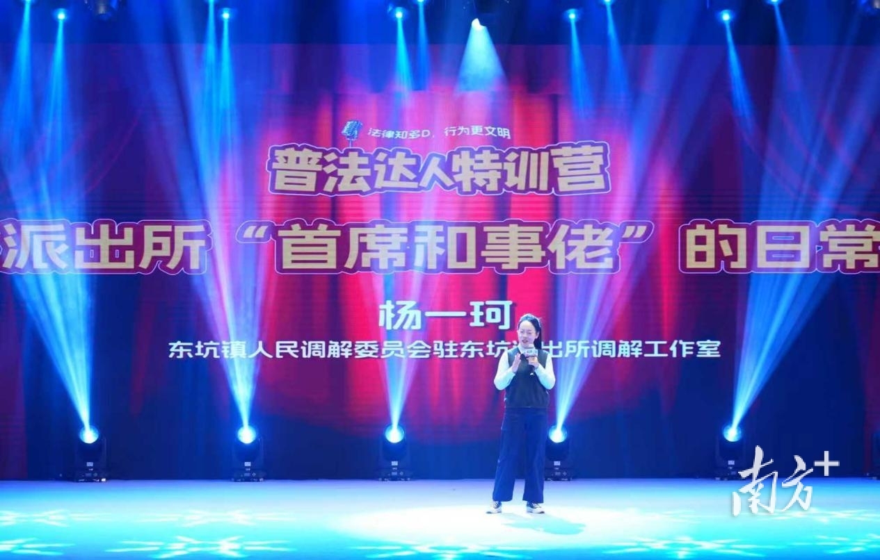 “为了把全运元素和调解工作融合,这个脚本前后打磨了四五版,每天晚上都要投入两三个小时修改。”节目表演者、东坑镇派出所驻点调解员杨一珂,是东莞普法达人特训营的学员。她坦言,脚本结合此前普法达人特训营所学,核心内容结合工作实际创作。“我既想让大家了解人民调解的价值,也想传递‘用运动活力做调解’的理念。”