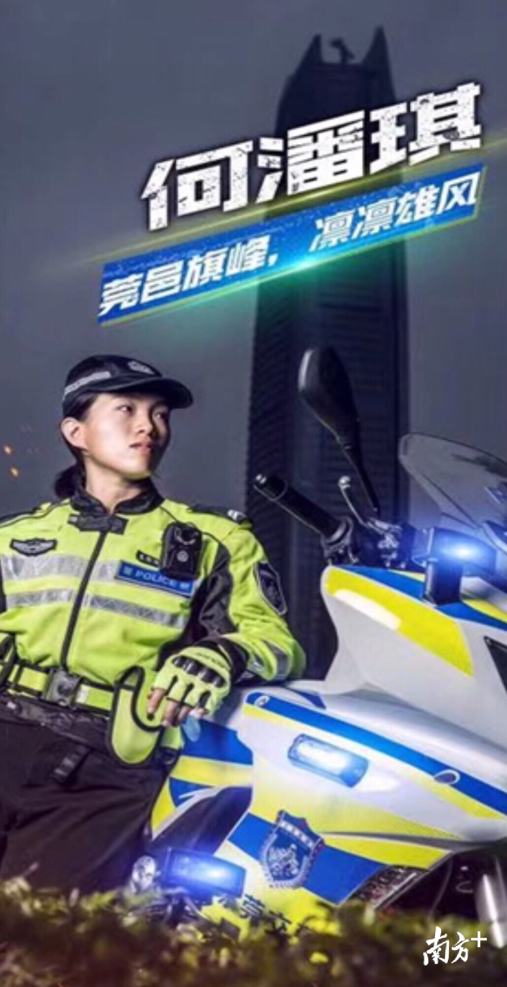 何潘琪毕业于广东警官学院,2017年10月加入东莞警队,在新警初任培训中被评为“优秀学员”。2018年4月,何潘琪由长安公安分局厦岗派出所抽调至东莞公安局旗峰突击队,她克服驾驶摩托车的恐惧畏难心理,勤于学习,以最快速度熟练掌握驾驶技能,并担任旗峰突击队女生班长,热心帮助队员共同进步。