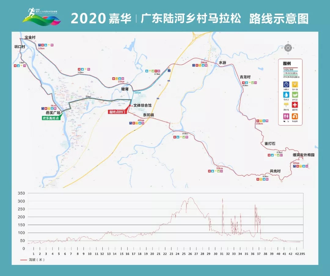 文体综合馆(起点)-朝阳路-人民中路-泰安桥-岳溪广场-内洞村-圳口村-布金村-叶江桥-宝金村-河北上下楼村-环城北路-河东高速路口-牛皮坜村-水唇圩(十字路口)-竹江村-车田村-大陂村-雷打石村-螺洞村-共光村-竹园村-新东村-东坑圩(三叉路口)-芋陂坑村-文体综合馆(终点)