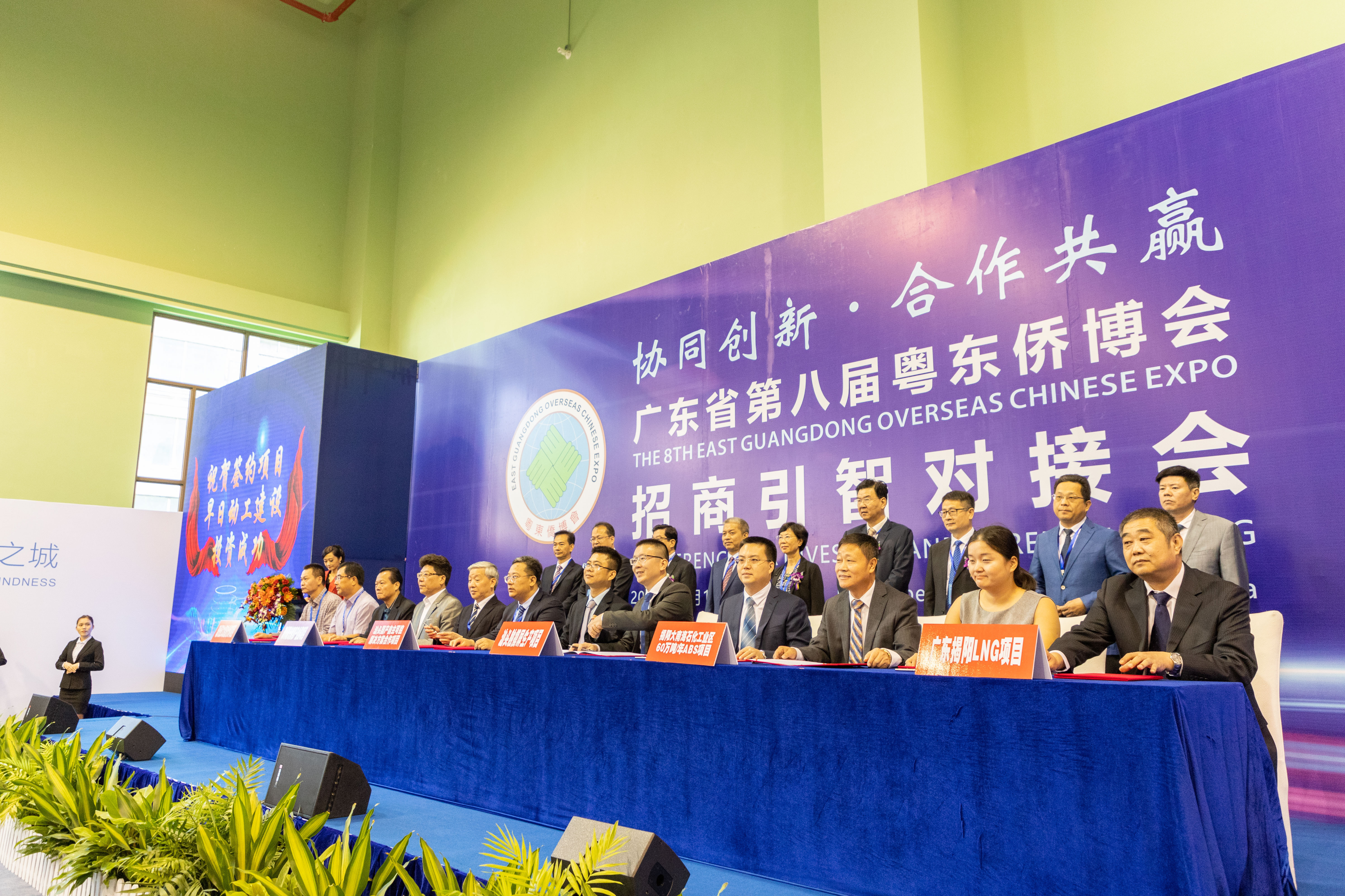 招商引智对接会以“协同创新、合作共赢”为主题,举行了粤东四市投资项目、高端人才合作项目对接交流会,以及四市重点项目签约仪式,携手推进“一带一路”和粤港澳大湾区建设,促进侨资利用和海外高端技术、人才引进与合作,提升粤东创新创业发展水平。现场对接和洽谈重点投资项目45个、重点人才合作项目19个,重点投资项目投资总额为1437.1亿元人民币;同时,促成了5个重大人才合作项目和11 个重大投资项目进行现场签约,签约的重大投资项目总投资额为363.7亿元,涵盖机械装备、电子信息、电力能源、商贸物流等领域。