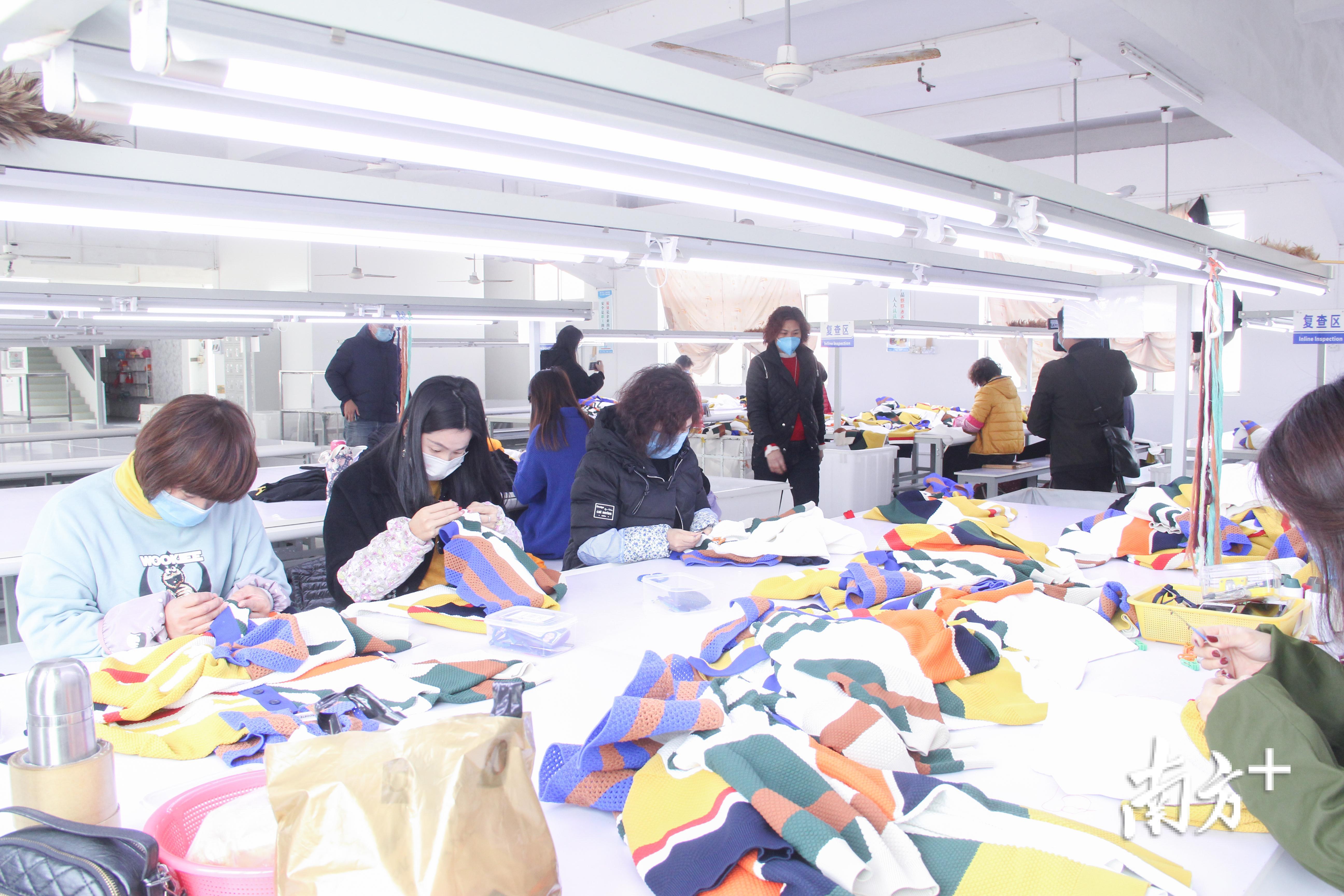 这家生产经营毛衫、裙、裤等针织、珠绣时装及洗烫业务的民营企业,三十年来一直秉持着诚信经营、奉献社会的企业理念,为当地提供了大量的工作岗位。在当地政府的协助下,该公司于2月13日正式复工复产,已有44名工人返岗。公司每天都会对生产车间进行消毒,对上岗员工进行体温检测,并要求员工佩戴口罩,做好一系列防护措施。“开工前一天公司就对我们进行了防疫知识的宣讲,要求我们戴好口罩,有什么不舒服一定要第一时间上报。”一名在毛衣复查区工作的女工说。